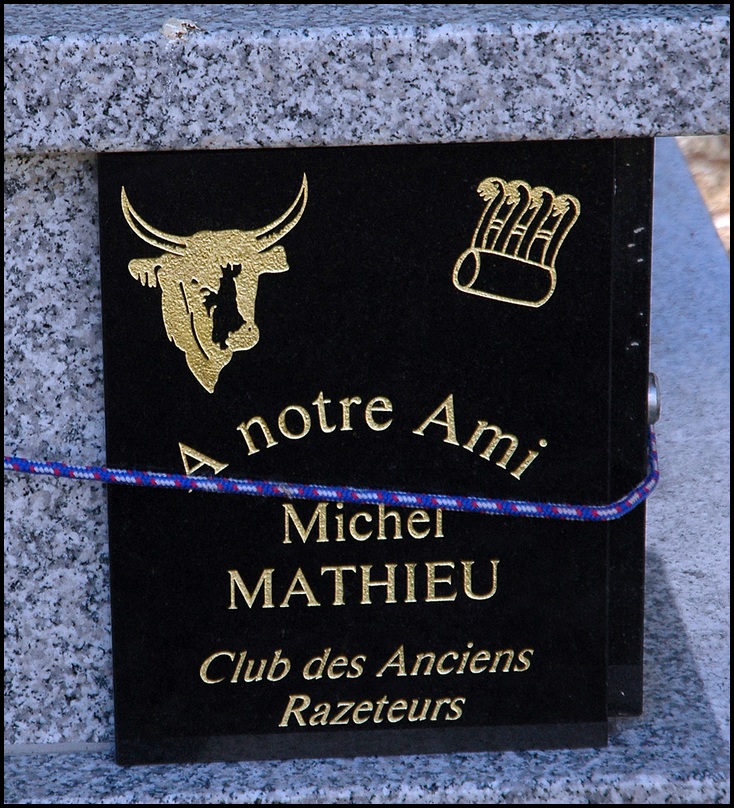 Le 11 août 2017, au cimetière du Cailar, a eu lieu la remise de plaque par le Club des Anciens Razeteurs à Michel Mathieu.