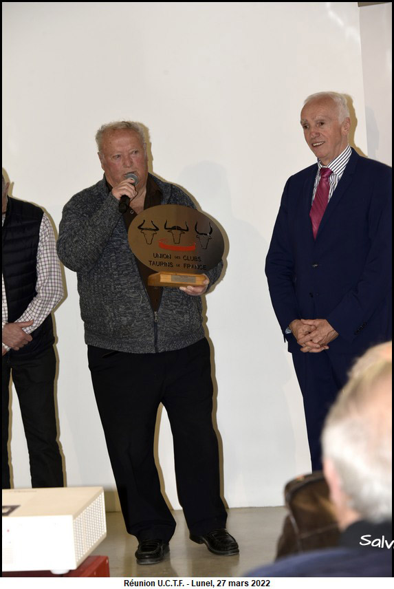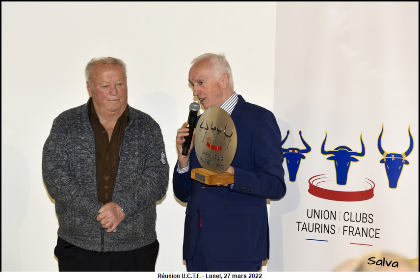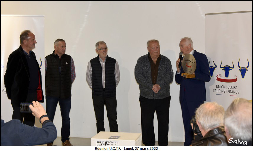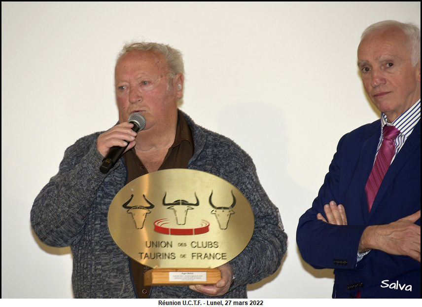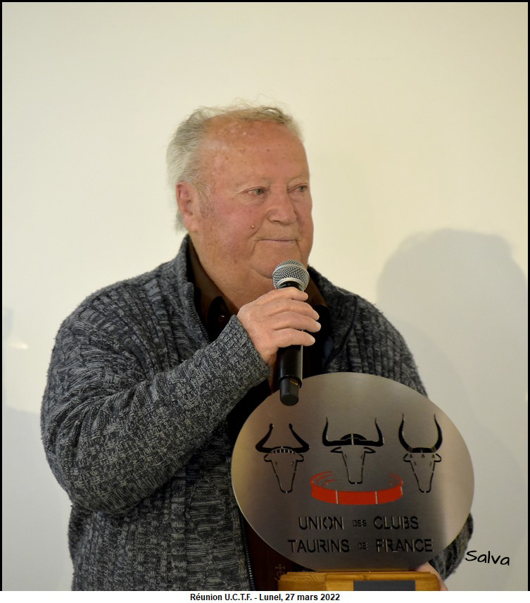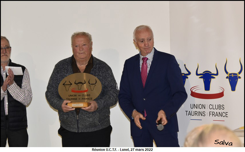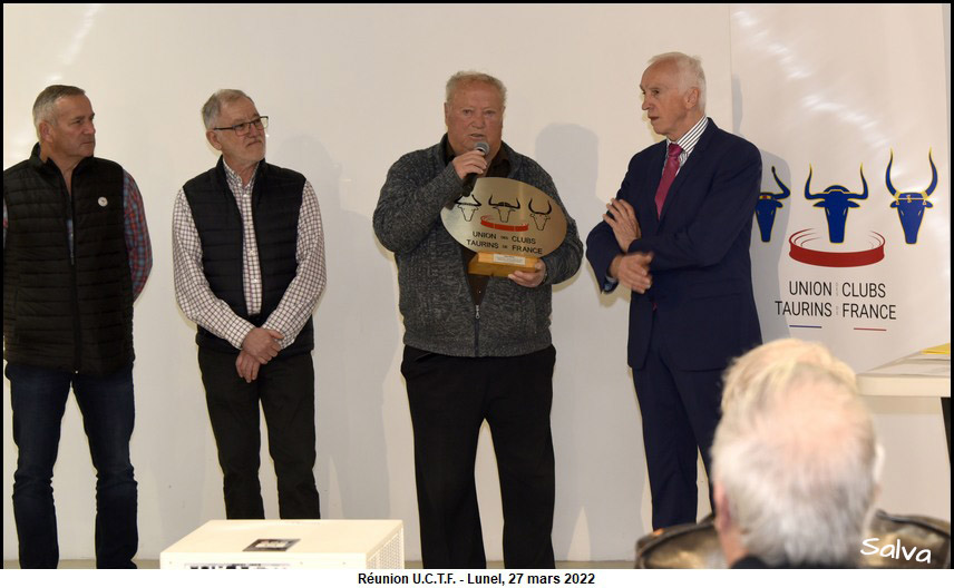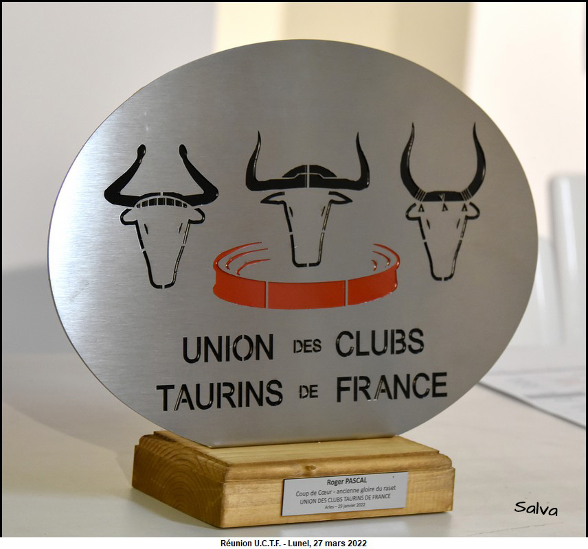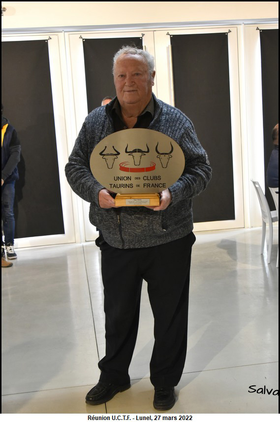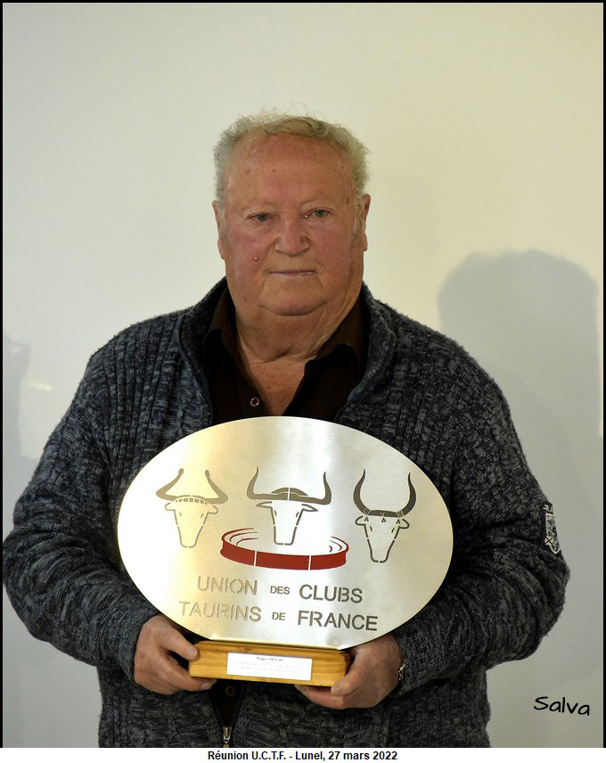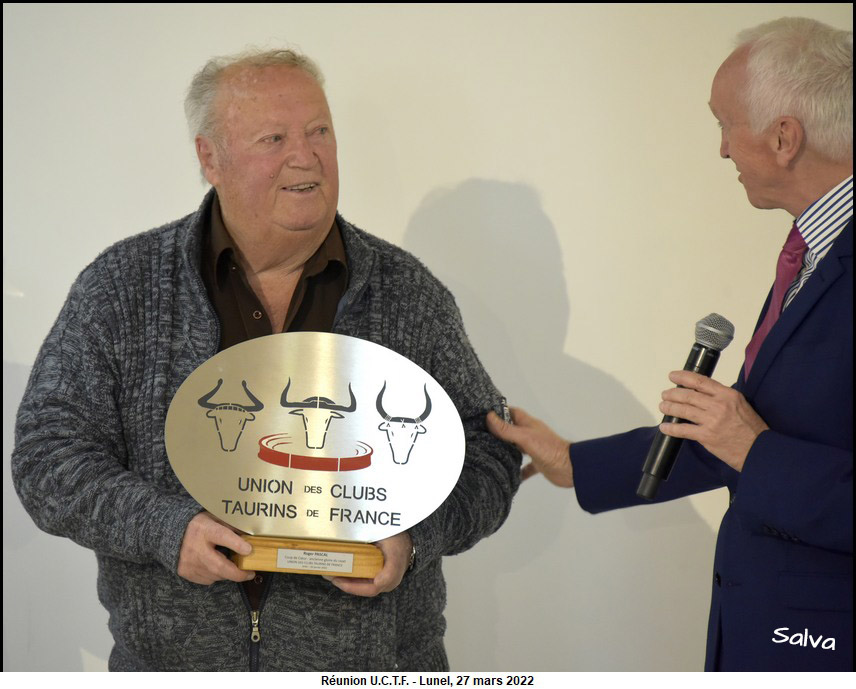Roger Pascal honoré par l’ U.C.T.F. Ce la s’est passé le dimanche 27 mars 2022 dans la salle des Trophées des arènes de Lunel.