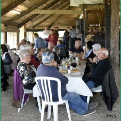 C’est sans doute cette pluie qui à dissuadé trente neuf de participants inscrits à ne pas honorer leur engagement. Nous étions donc 75 personnes à table. Je vous laisse deviner qui a réglé leur repas….