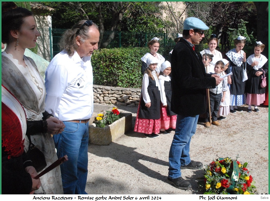 Le 6 avril 2024, à Aureille, le Club de Anciens Razeteurs a déposé une gerbe sur le Souvenir André SOLER.