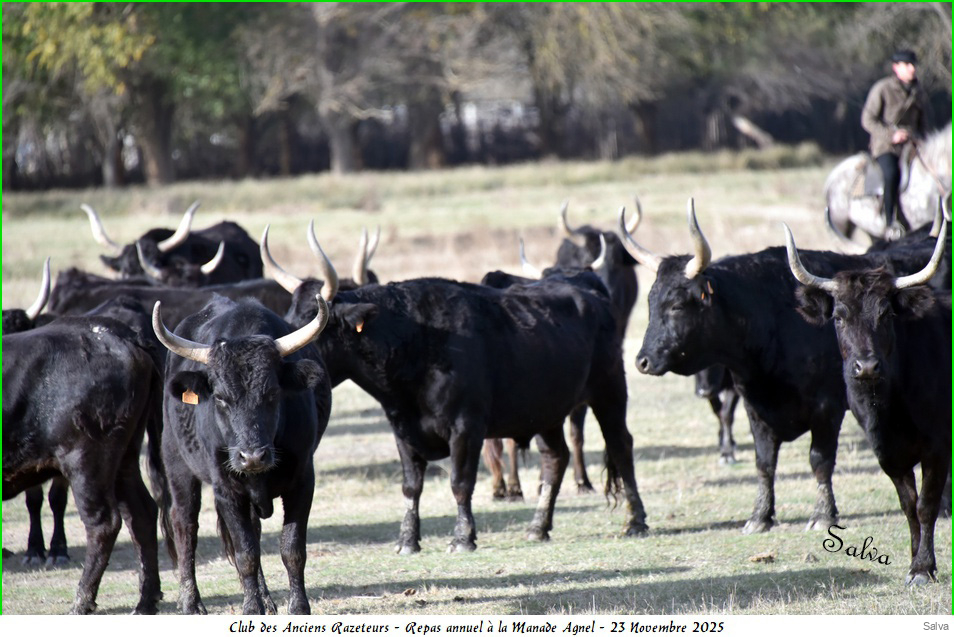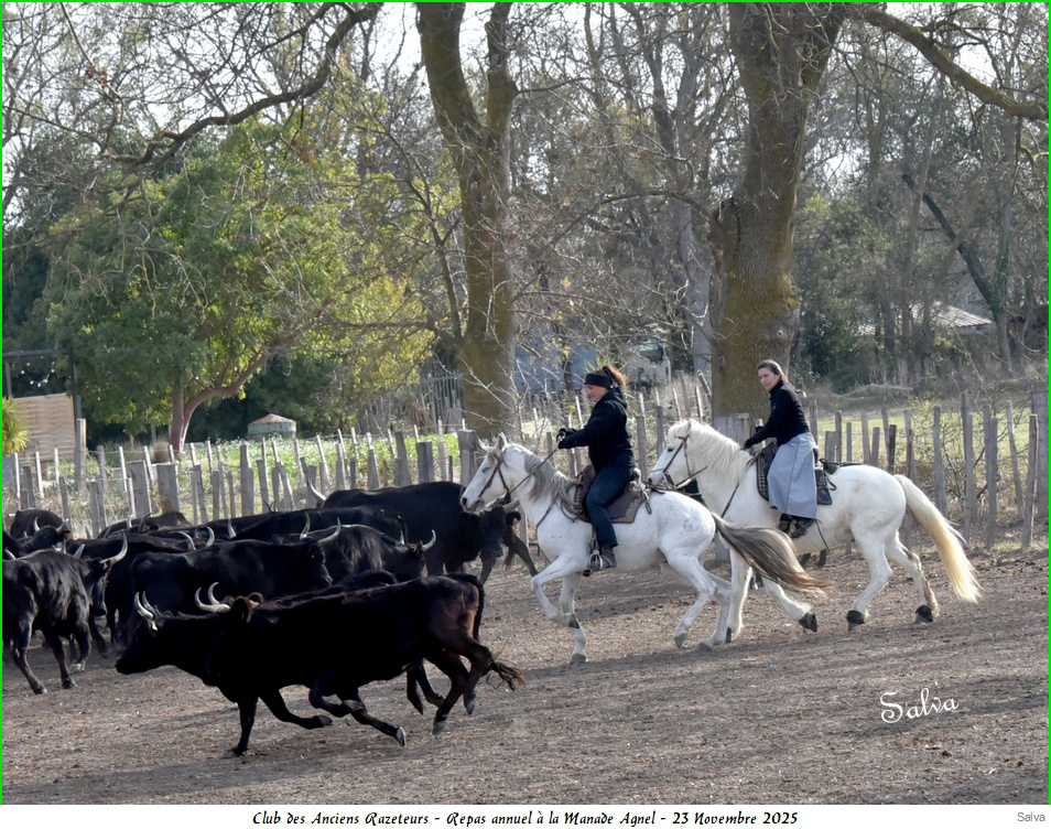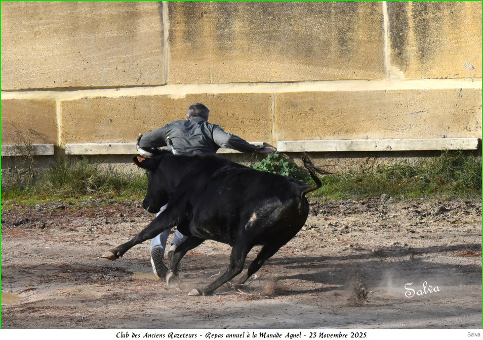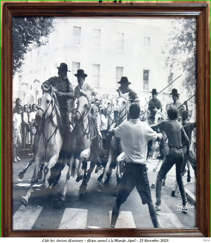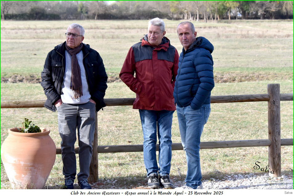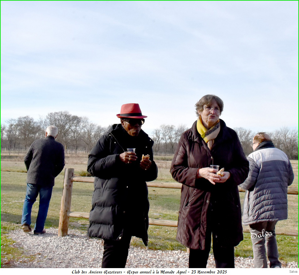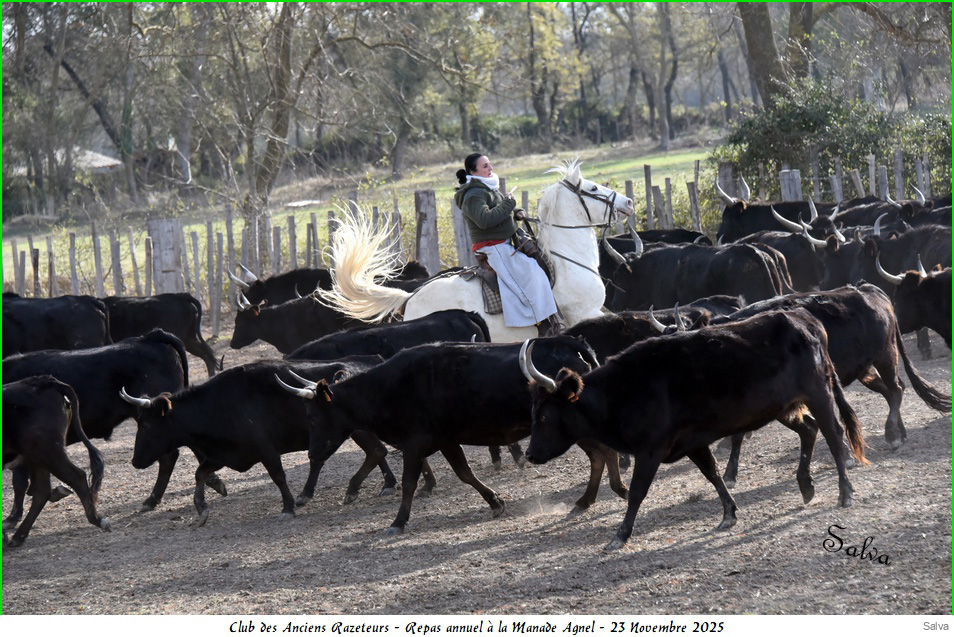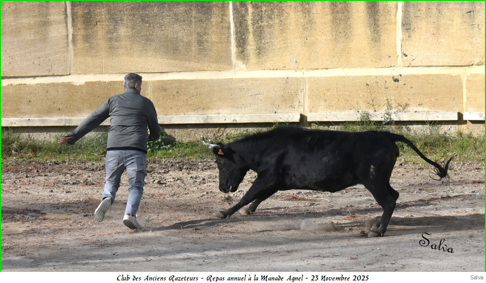Comme annoncé, il a eu lieu le 23 novembre 2025 au Cailar chez la manade Agnel aux Hourtès. Cette journée est l’événement majeur du Club des Anciens Razeteurs. Préparée longtemps à l’avance, elle réunit tous ces anciens (défense d’employer le mot « vieux » !!!) acteurs de la course camarguaise ainsi que ses amis et sympathisants. Pour ceux qui ne sont pas dans ce cercle, ce qui frappe au premier abord c’est la sympathie, la solidarité qui se dégage de leurs rapports. Ils ont pu être de grands rivaux sur le sable, ils sont des frères dans la vie.