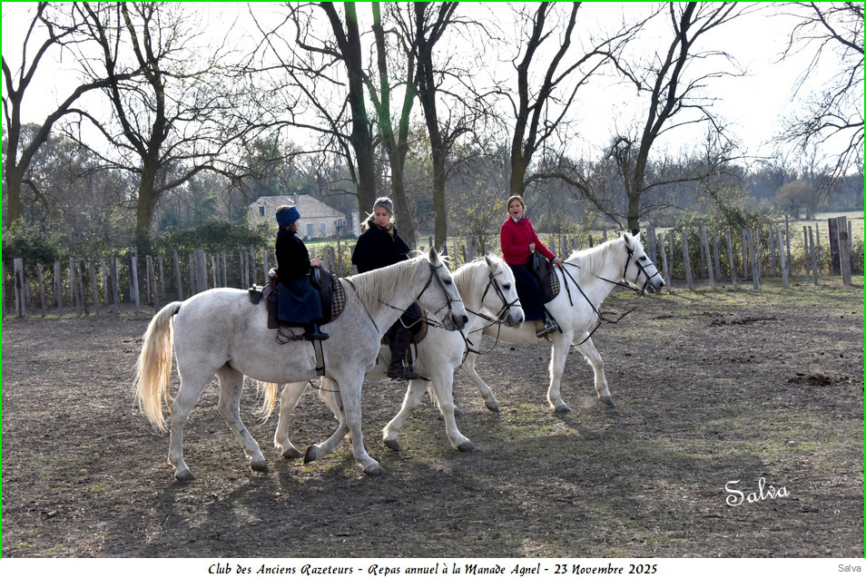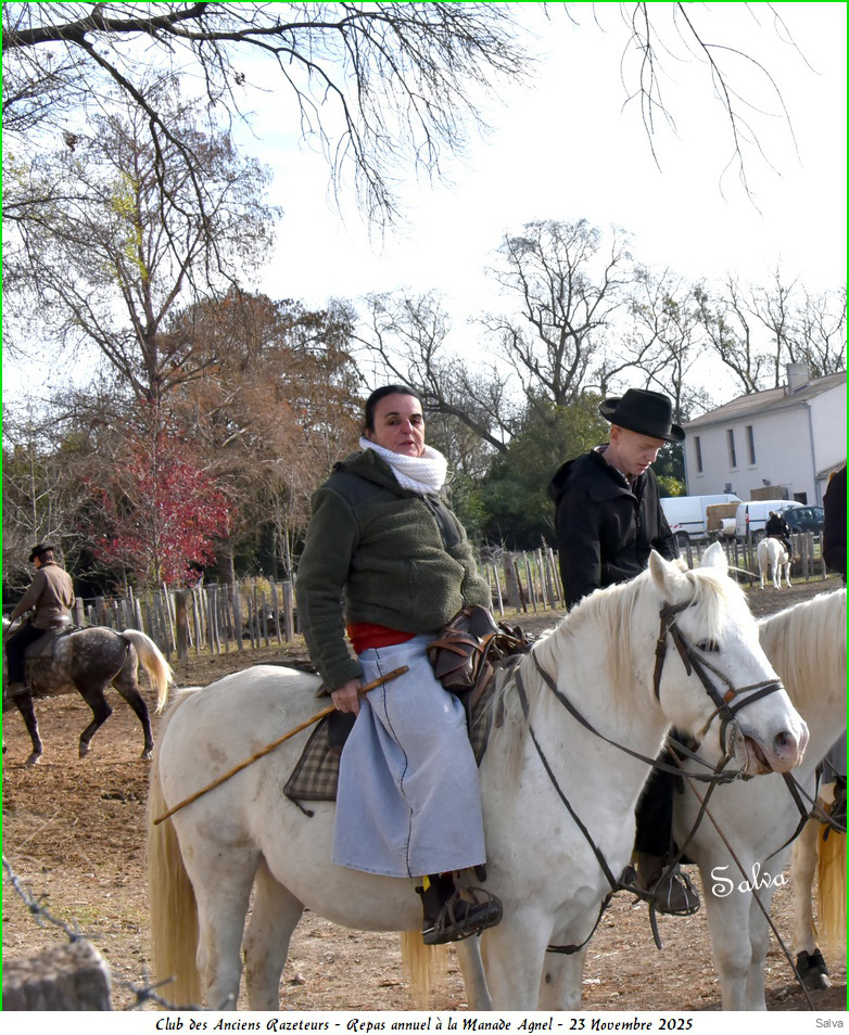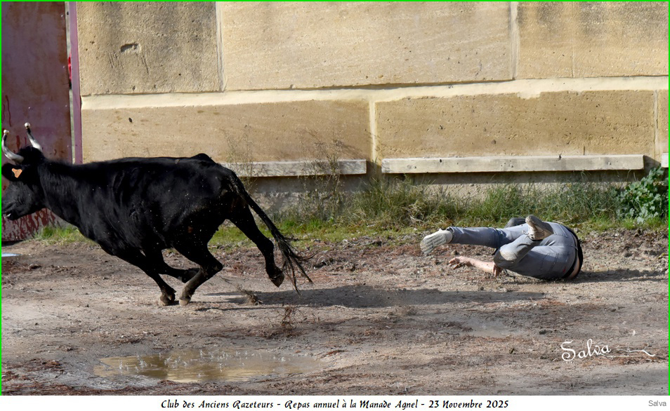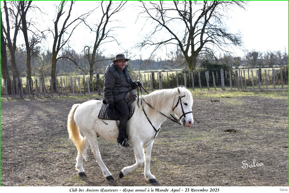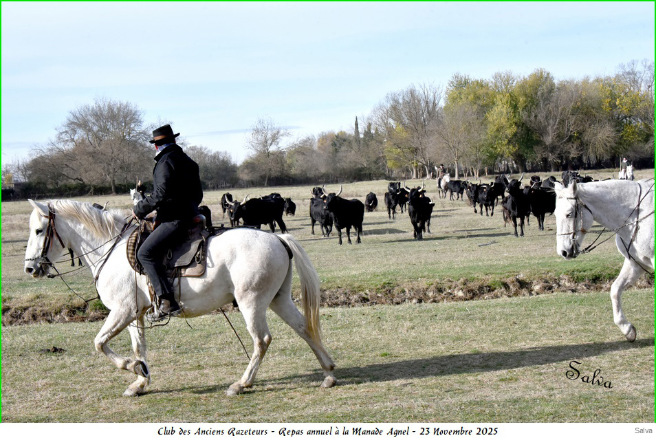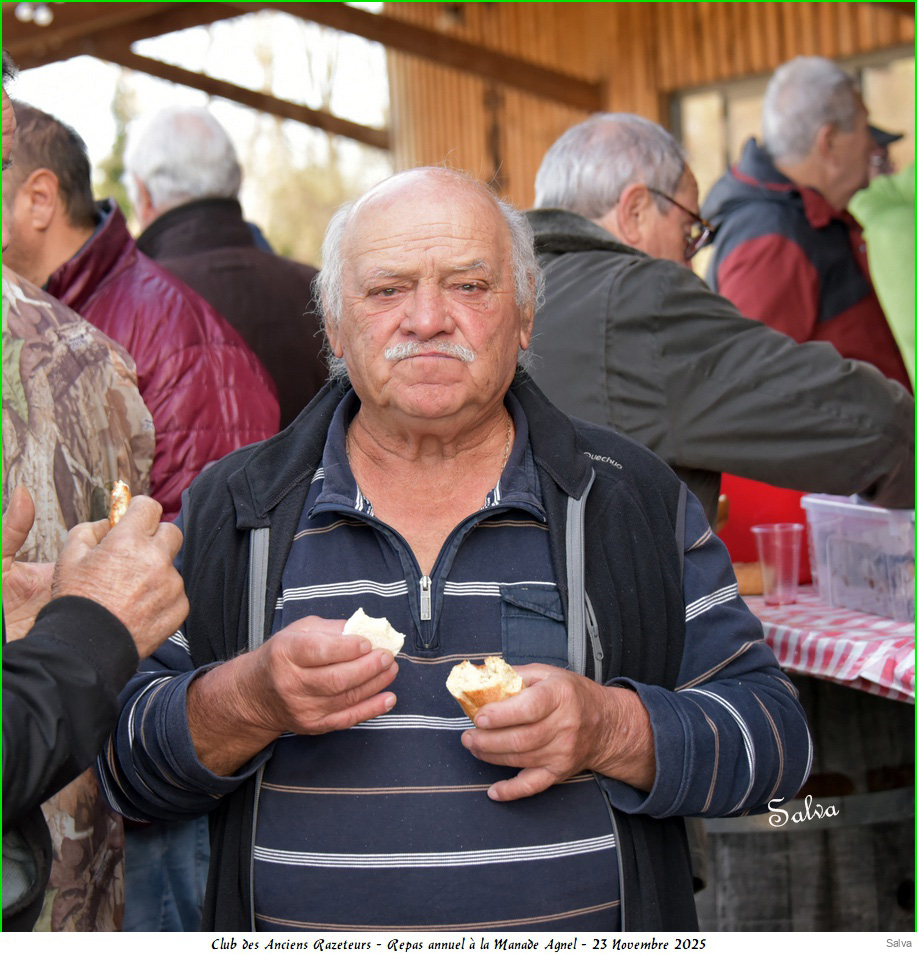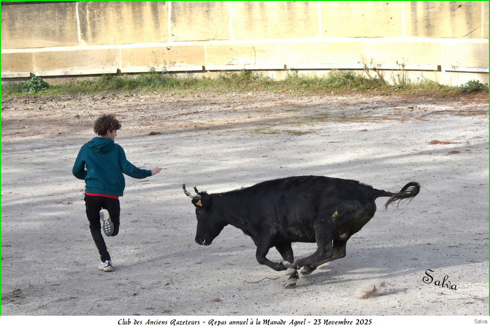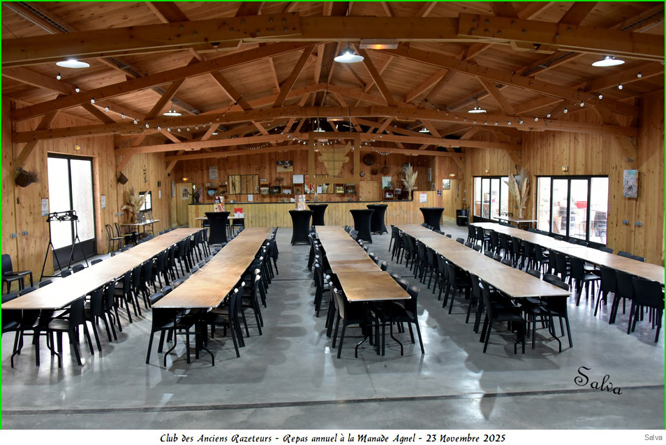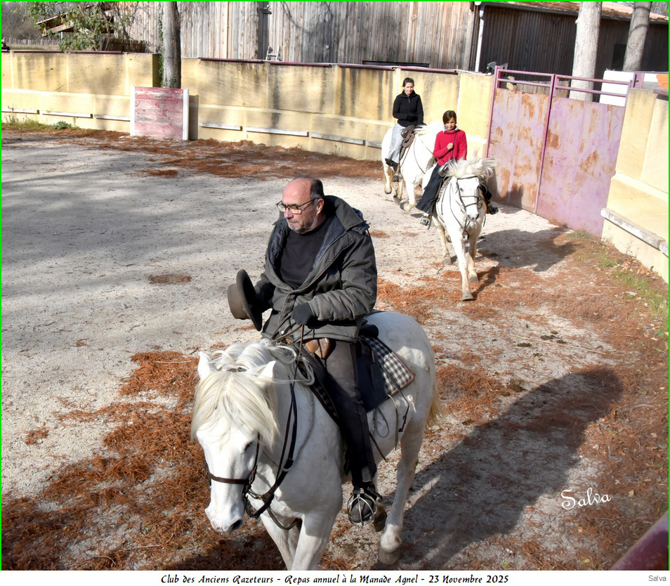 Comme annoncé, il a eu lieu le 23 novembre 2025 au Cailar chez la manade Agnel aux Hourtès. Cette journée est l’événement majeur du Club des Anciens Razeteurs. Préparée longtemps à l’avance, elle réunit tous ces anciens (défense d’employer le mot « vieux » !!!) acteurs de la course camarguaise ainsi que ses amis et sympathisants. Pour ceux qui ne sont pas dans ce cercle, ce qui frappe au premier abord c’est la sympathie, la solidarité qui se dégage de leurs rapports. Ils ont pu être de grands rivaux sur le sable, ils sont des frères dans la vie.