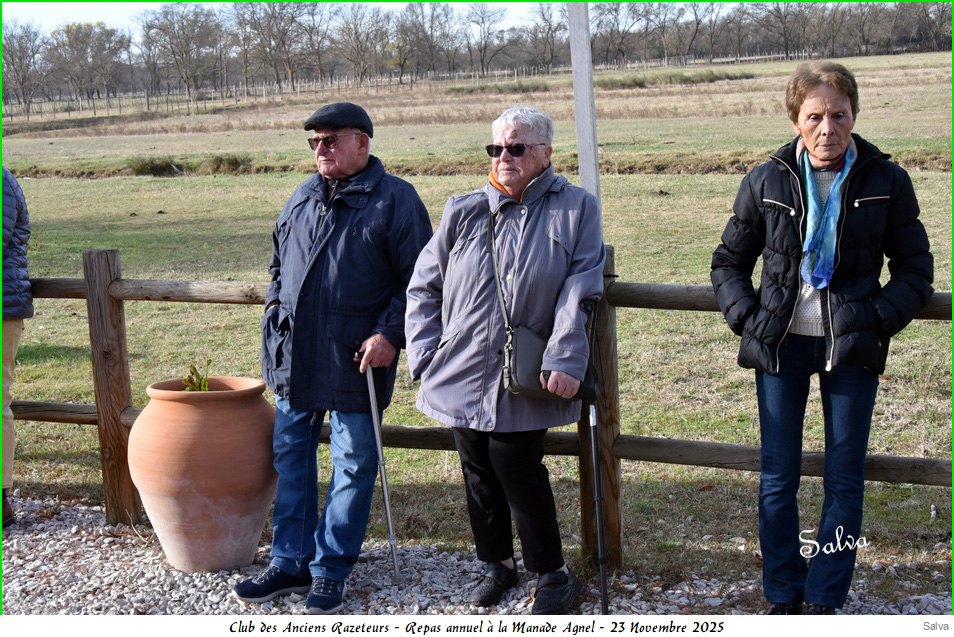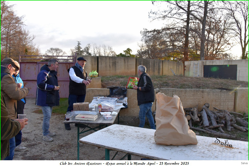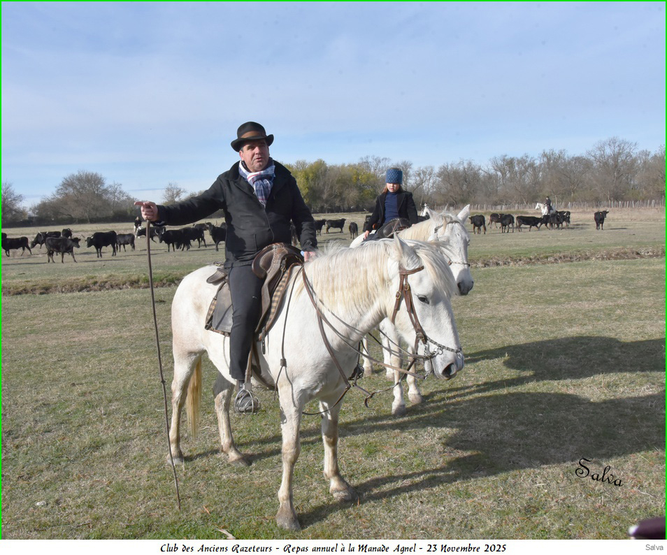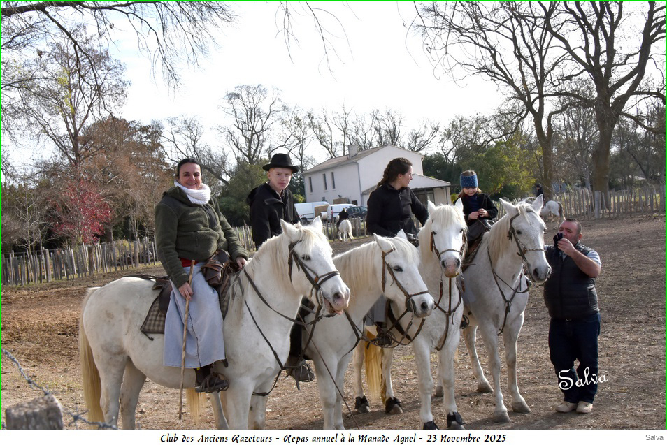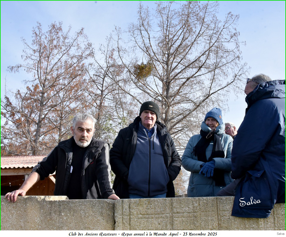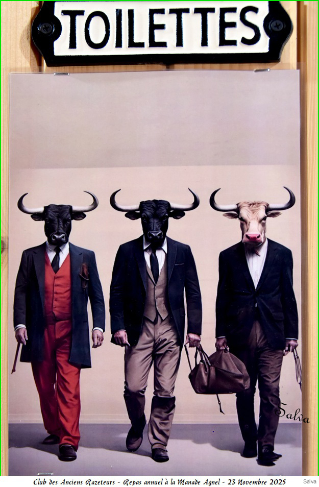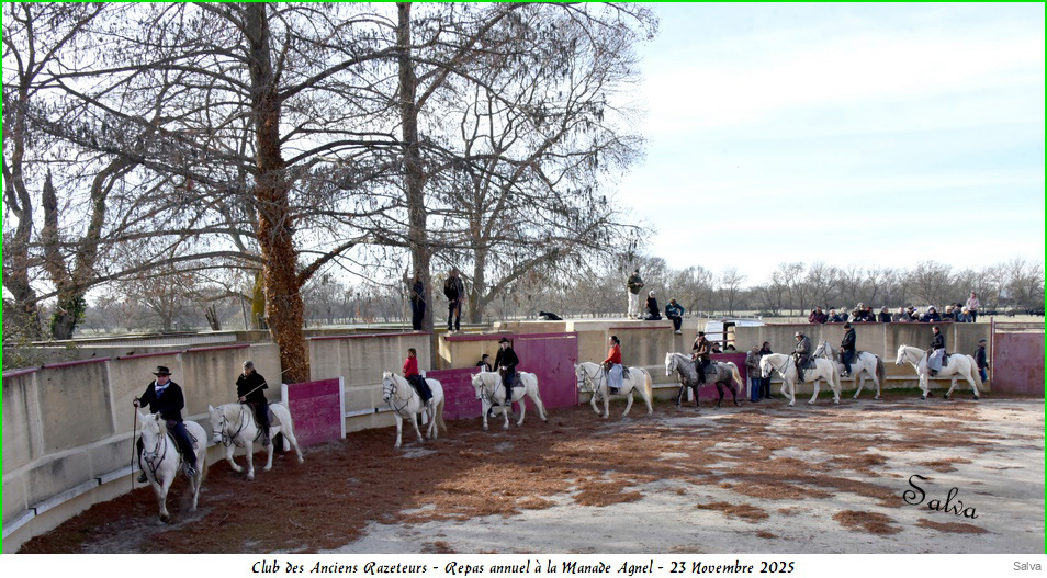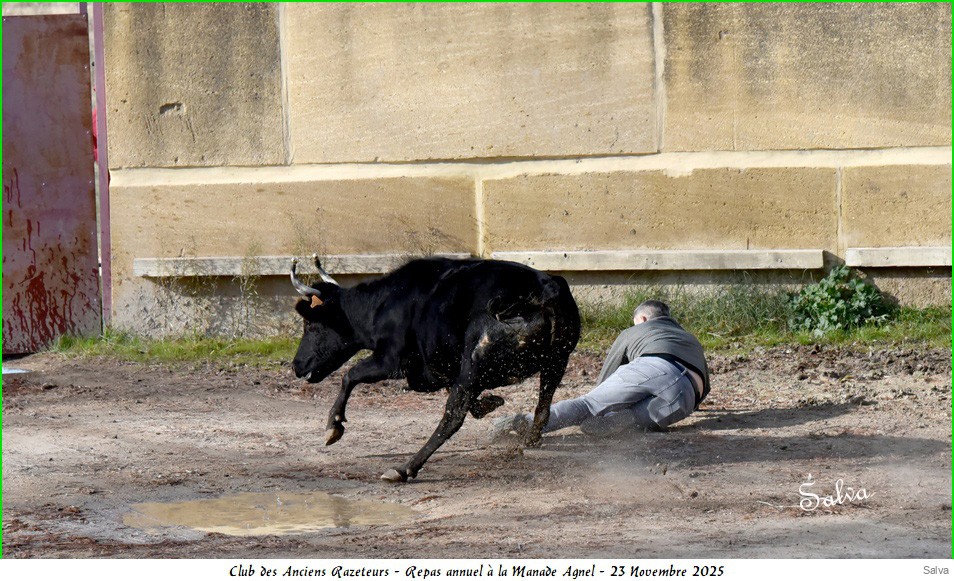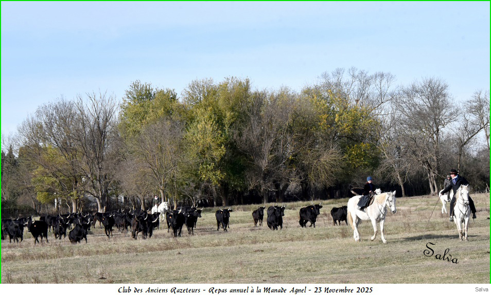 Comme annoncé, il a eu lieu le 23 novembre 2025 au Cailar chez la manade Agnel aux Hourtès. Cette journée est l’événement majeur du Club des Anciens Razeteurs. Préparée longtemps à l’avance, elle réunit tous ces anciens (défense d’employer le mot « vieux » !!!) acteurs de la course camarguaise ainsi que ses amis et sympathisants. Pour ceux qui ne sont pas dans ce cercle, ce qui frappe au premier abord c’est la sympathie, la solidarité qui se dégage de leurs rapports. Ils ont pu être de grands rivaux sur le sable, ils sont des frères dans la vie.