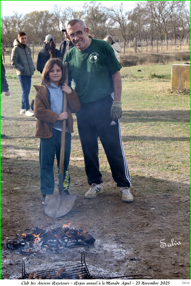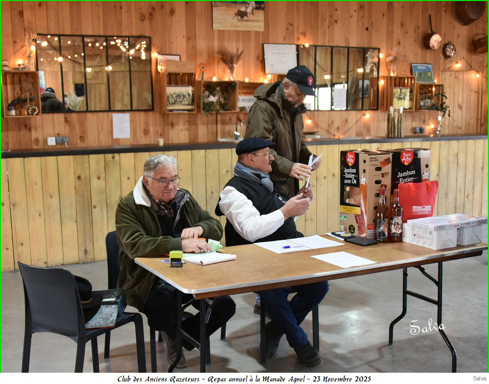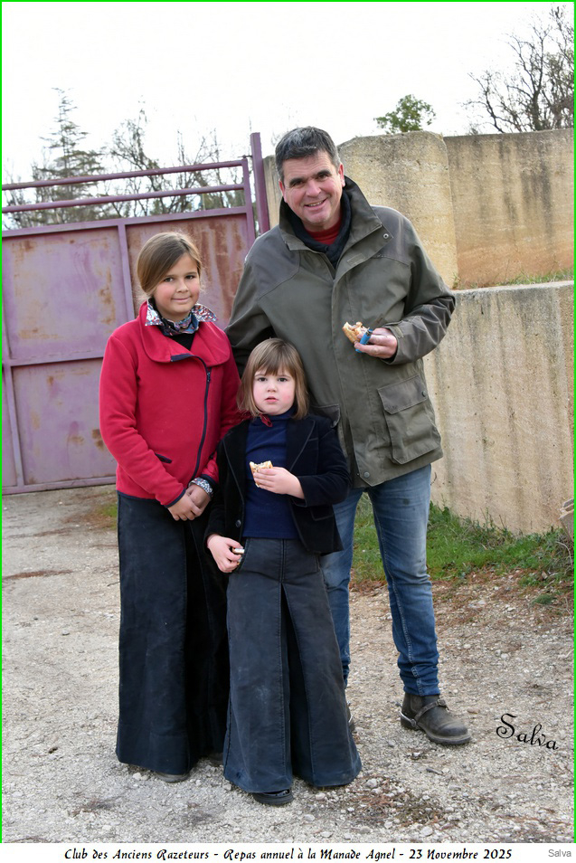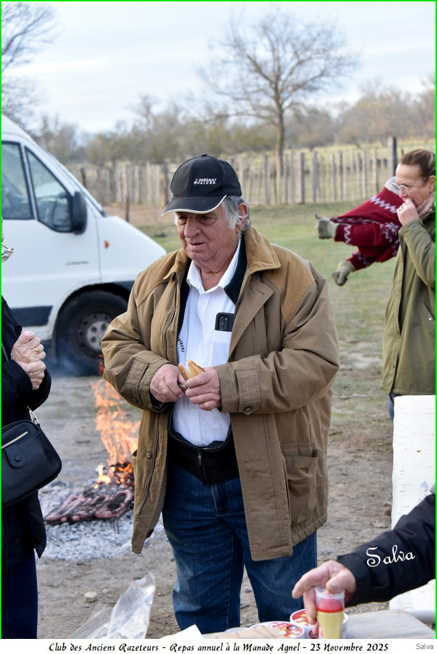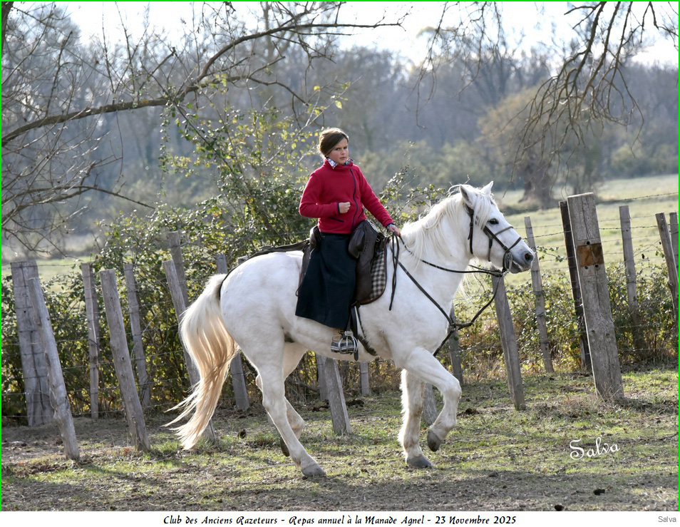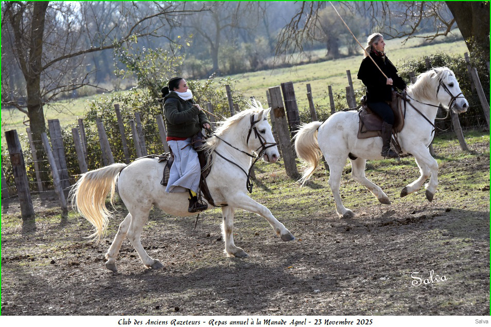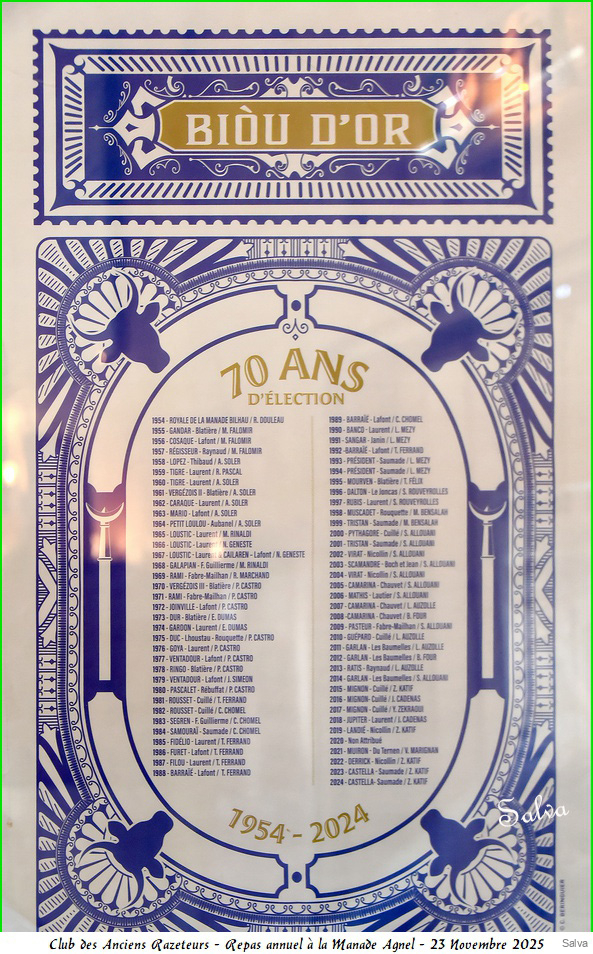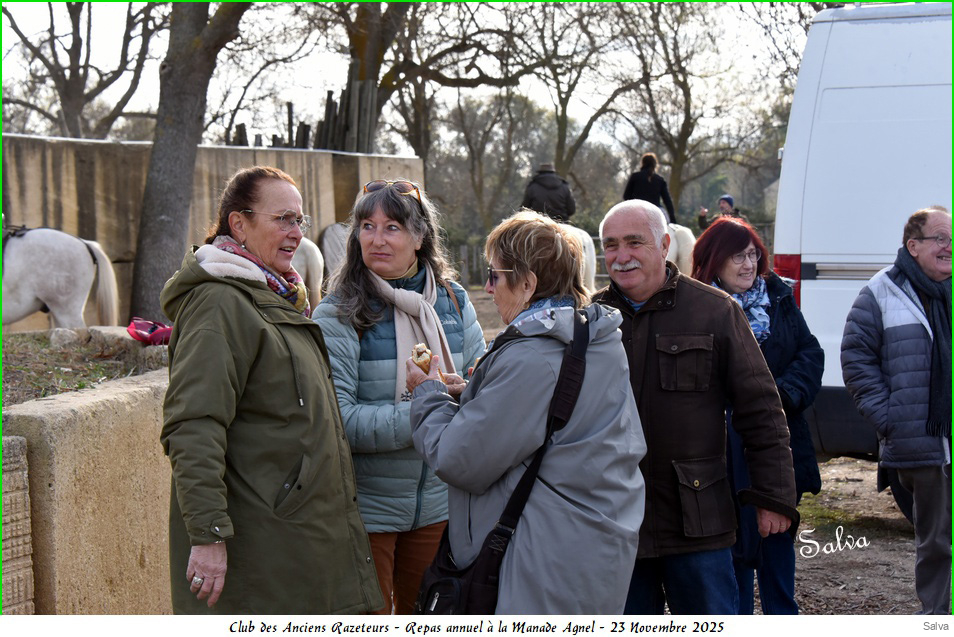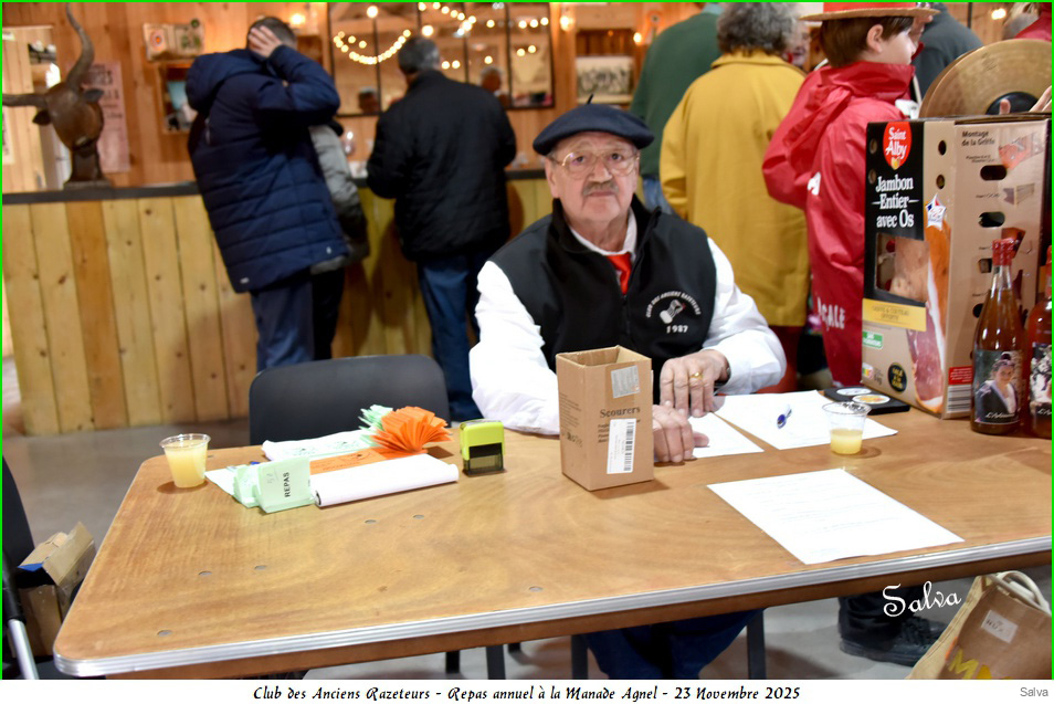Comme annoncé, il a eu lieu le 23 novembre 2025 au Cailar chez la manade Agnel aux Hourtès. Cette journée est l’événement majeur du Club des Anciens Razeteurs. Préparée longtemps à l’avance, elle réunit tous ces anciens (défense d’employer le mot « vieux » !!!) acteurs de la course camarguaise ainsi que ses amis et sympathisants. Pour ceux qui ne sont pas dans ce cercle, ce qui frappe au premier abord c’est la sympathie, la solidarité qui se dégage de leurs rapports. Ils ont pu être de grands rivaux sur le sable, ils sont des frères dans la vie.